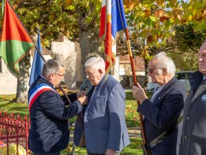 Après le dépôt de gerbes, un vin d’honneur a clôturé la cérémonie, à la salle des fêtes Jenny de Vasson. M. Gaultier a présenté les missions du Souvenir Français et l’exposition “La Grande Guerre” en place à la salle des fêtes jusqu’au 15/11 matin.