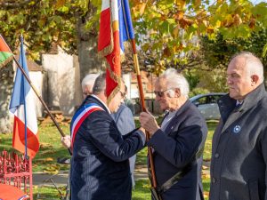 Monsieur le Maire Arnaud Denormandie a remis les insignes de bronze avec palme dorée, et les diplômes d’honneur de porte-drapeau, à Messieurs Bernard Lecreux et Jean Pirot.