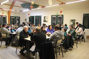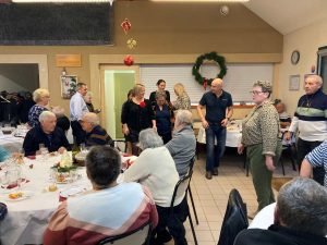 *56 personnes se sont retrouvées ce dimanche 7 décembre dans la salle des fêtes Jenny de Vasson, pour le repas des aînés : prémices des fêtes de fin d’année, avec un repas préparé par la Charcuterie Berrichonne de Neuvy-St-Sépulchre, et une belle animation haute en couleur et en voix, par Gillou et les ZinZines !
